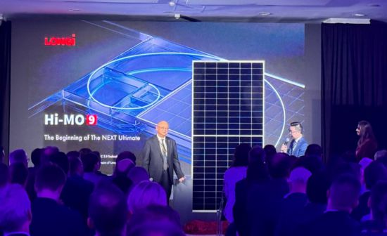当地时间5月7日,全球领先的太阳能科技公司隆基绿能在西班牙马德里重磅发布了晶硅电池效率新纪录与全新一代超高价值组件产品Hi-MO 9。隆基绿能创始人、总裁李振国,隆基绿能副总裁佘海峰,隆基绿能首席科学家、中央研究院副院长徐希翔博士,及全球客户代表、媒体记者等两百余人共同见证了产品的发布。